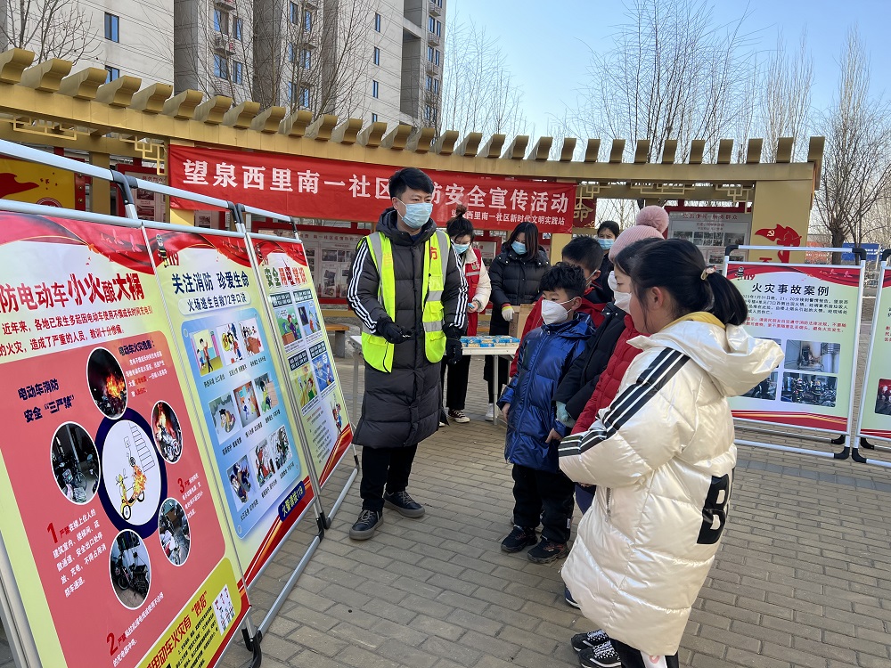 旺泉街道望泉西里南一社区新时代文明实践站开展消防安全宣传活动
