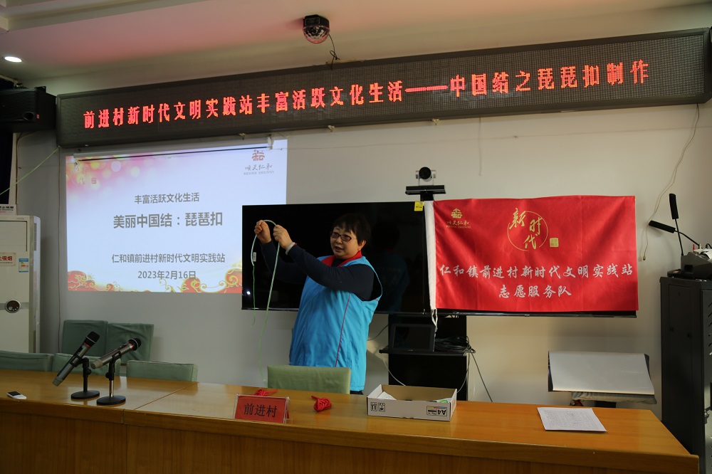 仁和镇前进村新时代文明实践站组织开展“美丽中国结之琵琶扣”编织活动