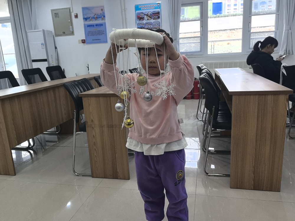 活动现场,老师先通过视频、图片为大家讲解大雪节气的习俗文化,带大家认识大雪节气的特点。随后,老师为大家分发手工材料,指导居民们一起制作“大雪”节气主题风铃。在轻松愉快的氛围中,大家将一个个铃铛、“雪花”装饰很快制作成一个个亮晶晶、金灿灿的“大雪”节气风铃,大家相互欣赏着成品,其乐融融。