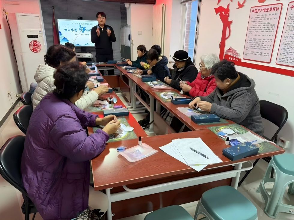 希望家园社区实践站开展了“指尖非遗仿烧蓝之约”非遗技法仿烧蓝发簪制作活动。活动现场,老师带大家走进烧蓝发簪的历史长河,让大家感受这一传统制作工艺的深厚文化内涵。随后,居民们迫不及待地开始自己的创作之旅,将仿釉烧蓝粉倒入调色盘中,经过调色、点蘸、上色,大家尽情挥洒创意,描绘出一幅幅精美的图案,享受着创作带来的乐趣与成就感。
