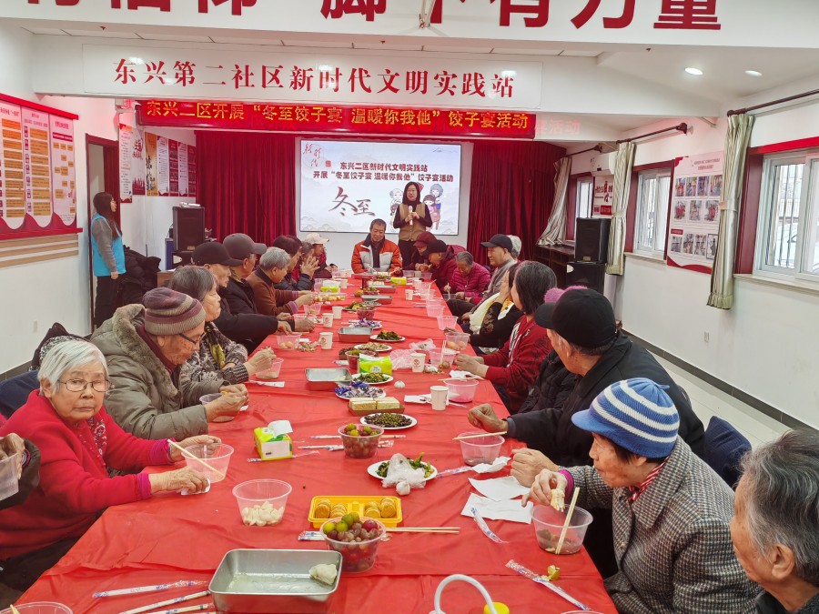 冬至大如年,人间小团圆。12月21日,光明街道东兴二区新时代文明实践站举办了一场别开生面的“冬至饺子宴,温暖你我他”饺子宴活动,邀请了社区内的独居、空巢老人以及高龄老人共享节日的温暖与欢乐。