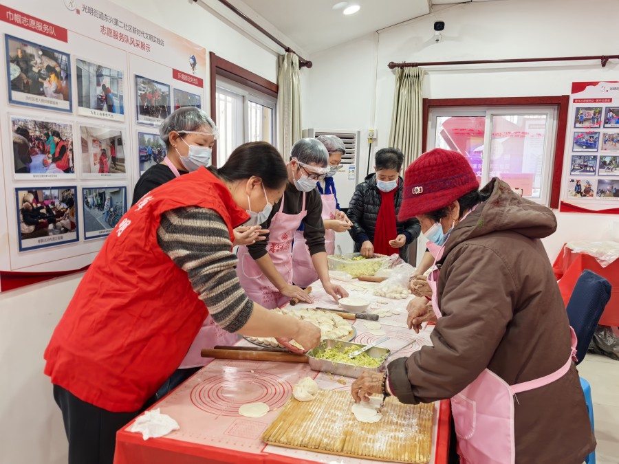 光明街道东兴二区新时代文明实践站开展“冬至饺子宴 温暖你我他”饺子宴活动