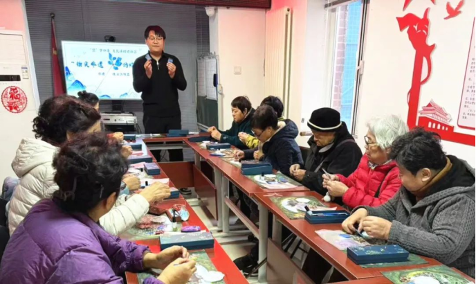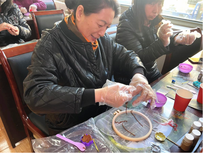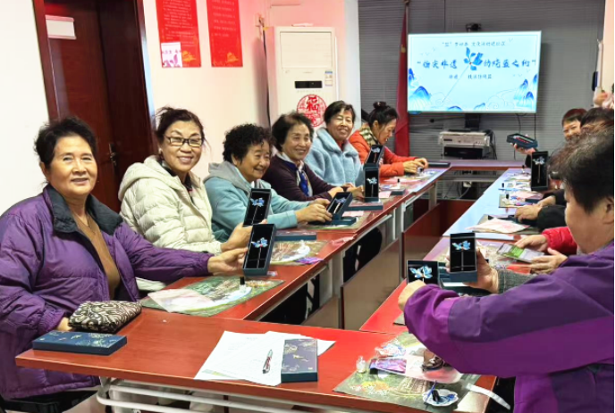 希望家园实践站开展了“指尖非遗仿烧蓝之约”非遗技法仿烧蓝发簪制作活动。活动现场,老师带大家一起走进烧蓝发簪的历史长河,让居民们了解这一传统首饰制作工艺的悠久历史和深厚文化内涵。在老师的悉心指导下,居民们迫不及待地开始了自己的创作之旅。大家将仿釉烧蓝粉倒入调色盘中,调色、点蘸、上色,每一个步骤都制作得小心翼翼。居民们尽情挥洒创意,在发簪模具上描绘出一幅幅精美的图案,享受着创作带来的乐趣与成就感。
