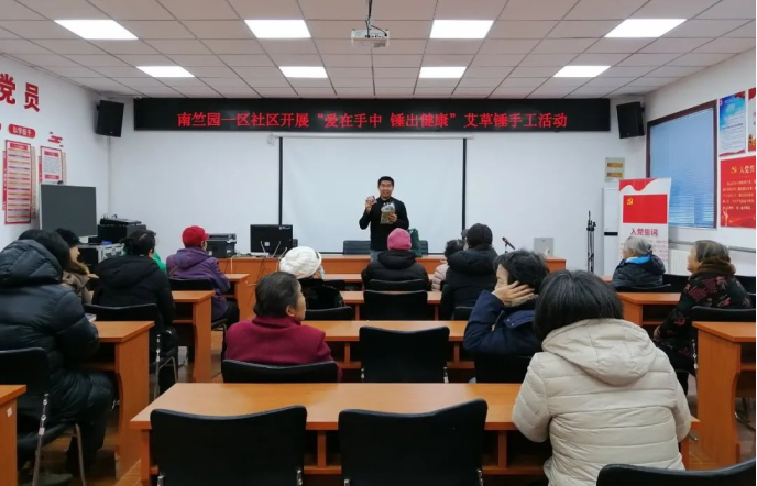 南竺园实践站开展了“爱在手中,锤出健康”艾草锤手工活动。活动中,志愿者向居民们介绍艾草养生的常识,指导大家使用艾草锤敲打身体的对应部位来疏通经络、运行气血。随后,在志愿者的耐心指导下,居民们纷纷动手制作艾草锤,把艾草裹在白布中用力揉紧,小心翼翼地堆放在彩色的棉布上,再将木柄固定在棉布上,最后用绳子一圈圈绑紧。制作中,居民们神情专注,在相互帮助下,一个个艾草锤逐渐成型。