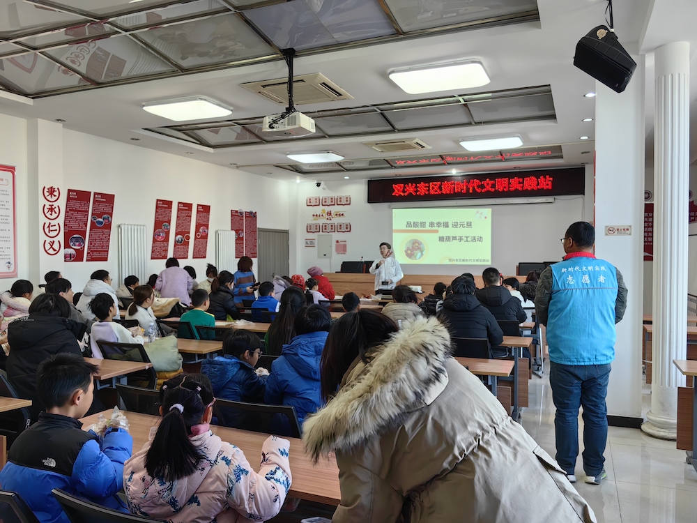 为丰富社区居民的文化生活,营造喜庆热闹的新年节日氛围,12月28日上午,双兴东区新时代文明实践站开展了“品酸甜 串幸福 迎元旦”糖葫芦手工制作活动,共20余组家庭参加。