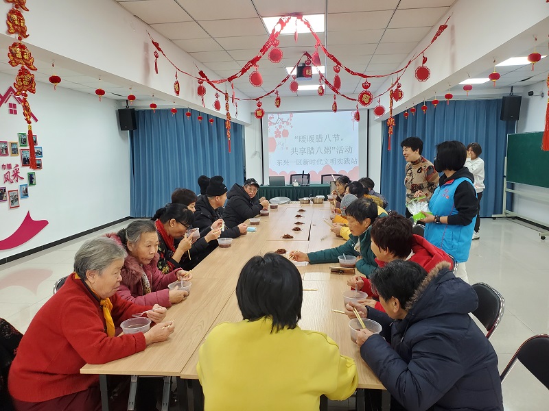 光明街道东兴一区新时代文明实践站开展“暖暖腊八节 共享腊八粥”活动