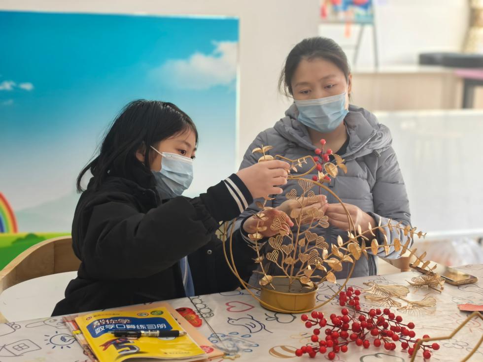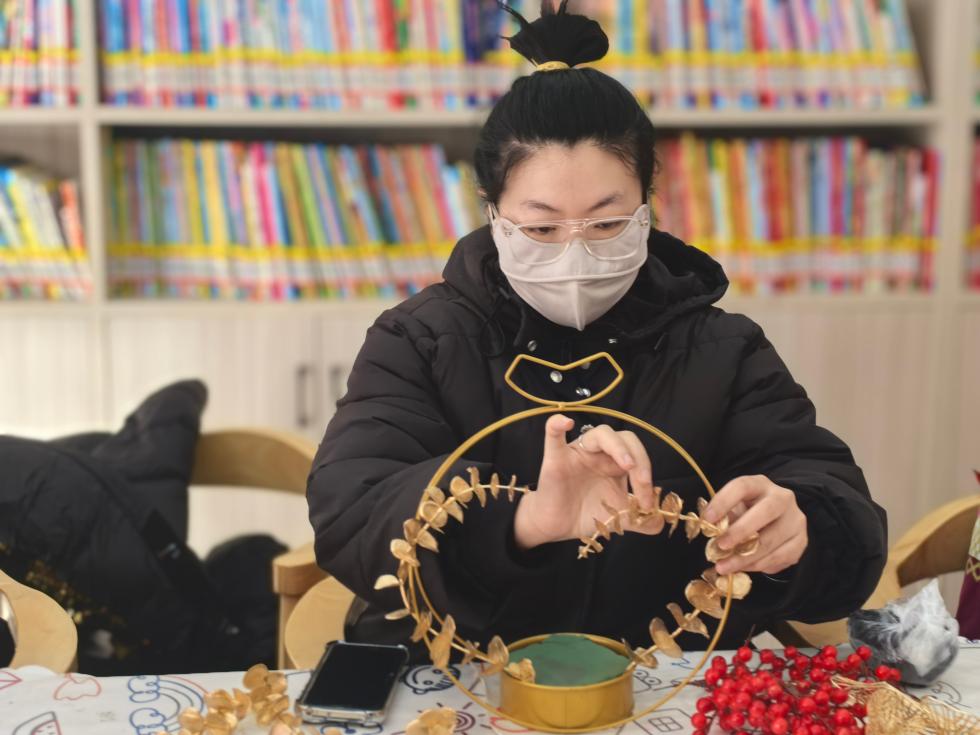 天竺镇新时代文明实践所开展“巧手迎春”年宵花蓝制作活动