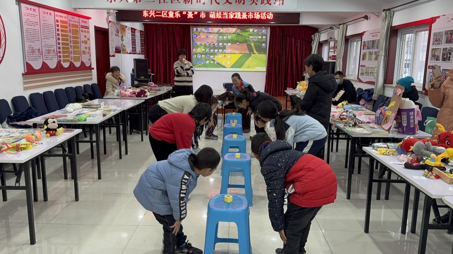 1月14日上午,东兴二区新时代文明实践站开展了“童乐‘蚤’市 萌娃当家”跳蚤市集活动,共招募了20组社区家庭参加。