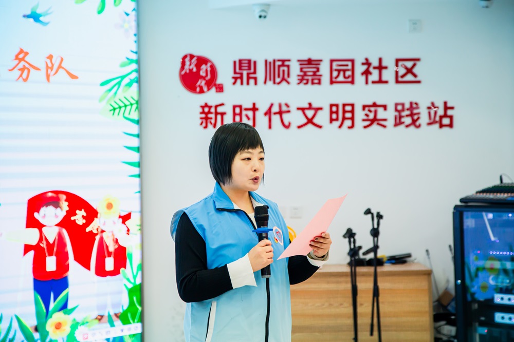 随后,“鼎呱呱”志愿者代表宋宇瞳上台发言,用真挚的语言表达对志愿服务的热爱与期待,并分享自己做志愿者的经验与心得。小宋同学表示将珍惜这次机会,在服务中锻炼自己,收获成长,同时再次向各位志愿者发起倡议,呼吁大家用心去体验、去付出,为共建美好家园献出自己的一份力。