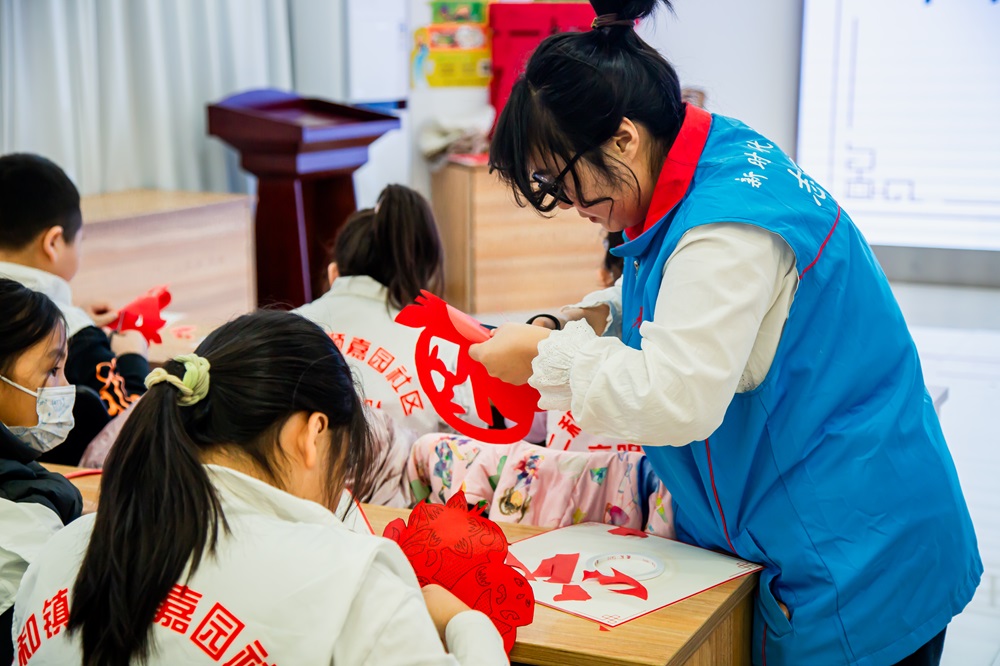 仁和镇鼎顺嘉园社区新时代文明实践站开展“多彩寒假·我是社区小助理”假期系列主题活动之剪纸篇