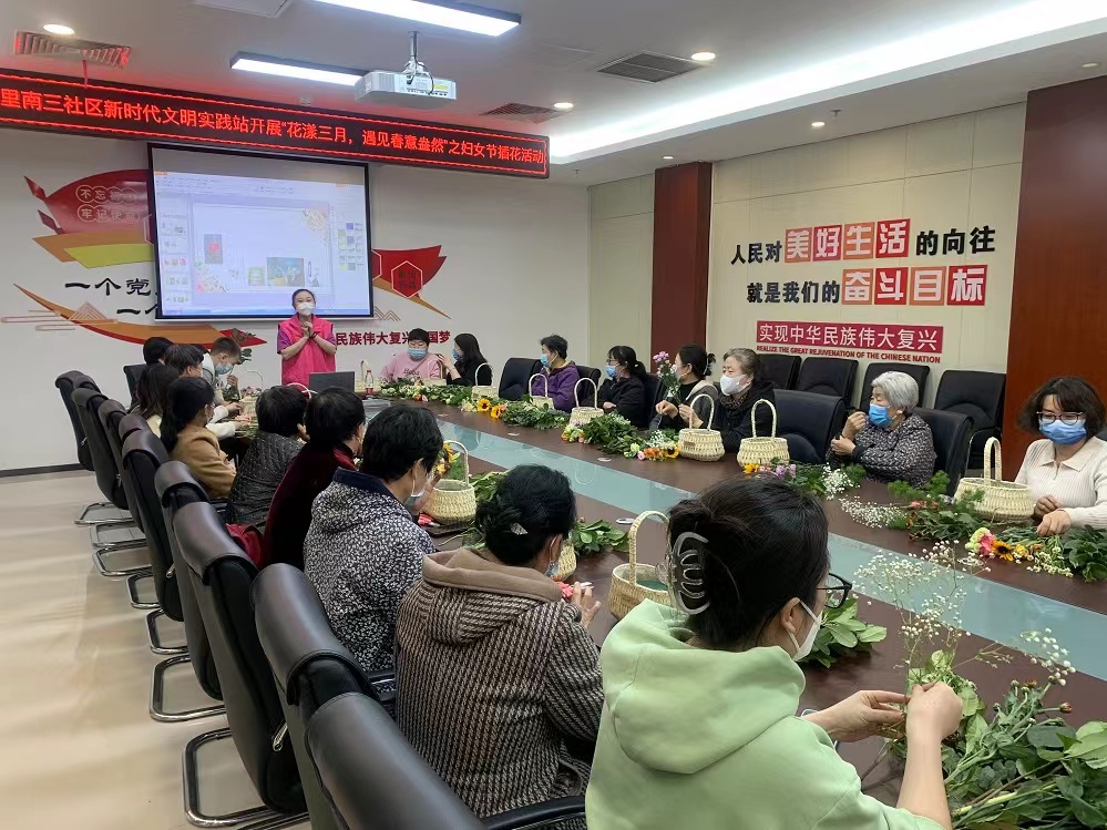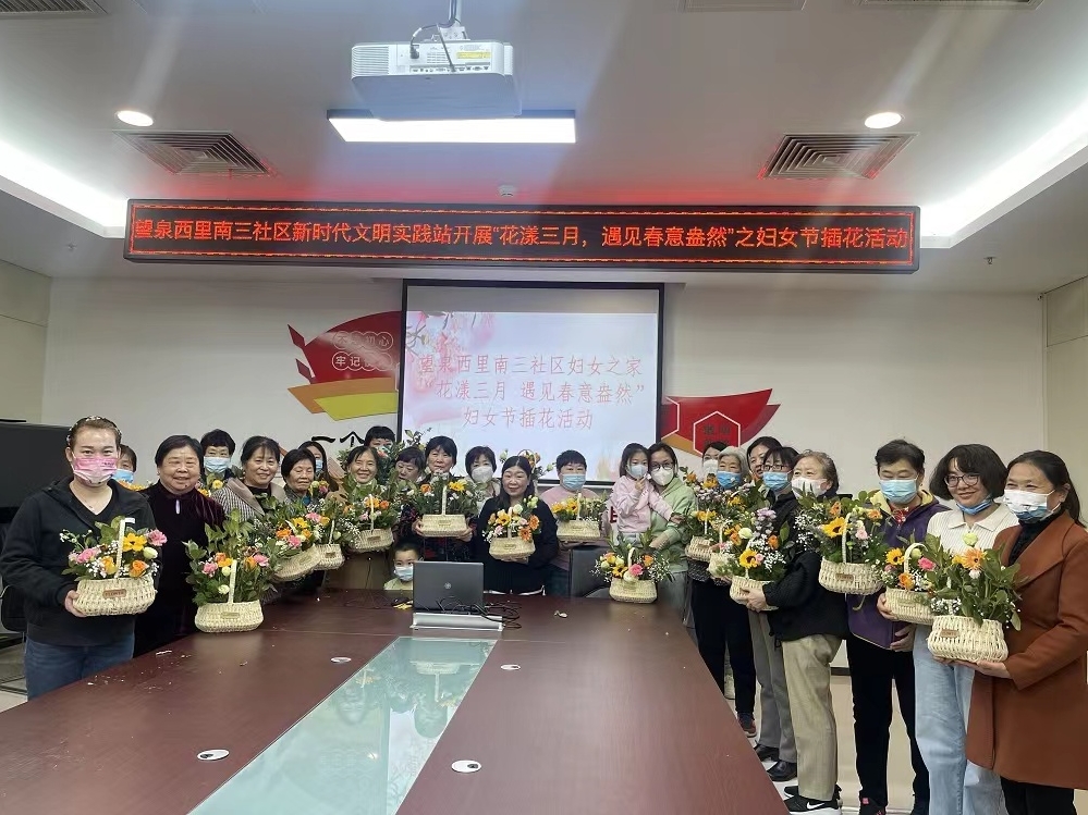 旺泉街道望泉西里南三社区新时代文明实践站开展"花漾三月,遇见春意盎然" 妇女节插花活动
