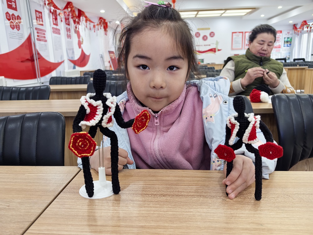仁和镇鼎顺嘉园社区新时代文明实践站开展“钩织春晚机器人”手作活动