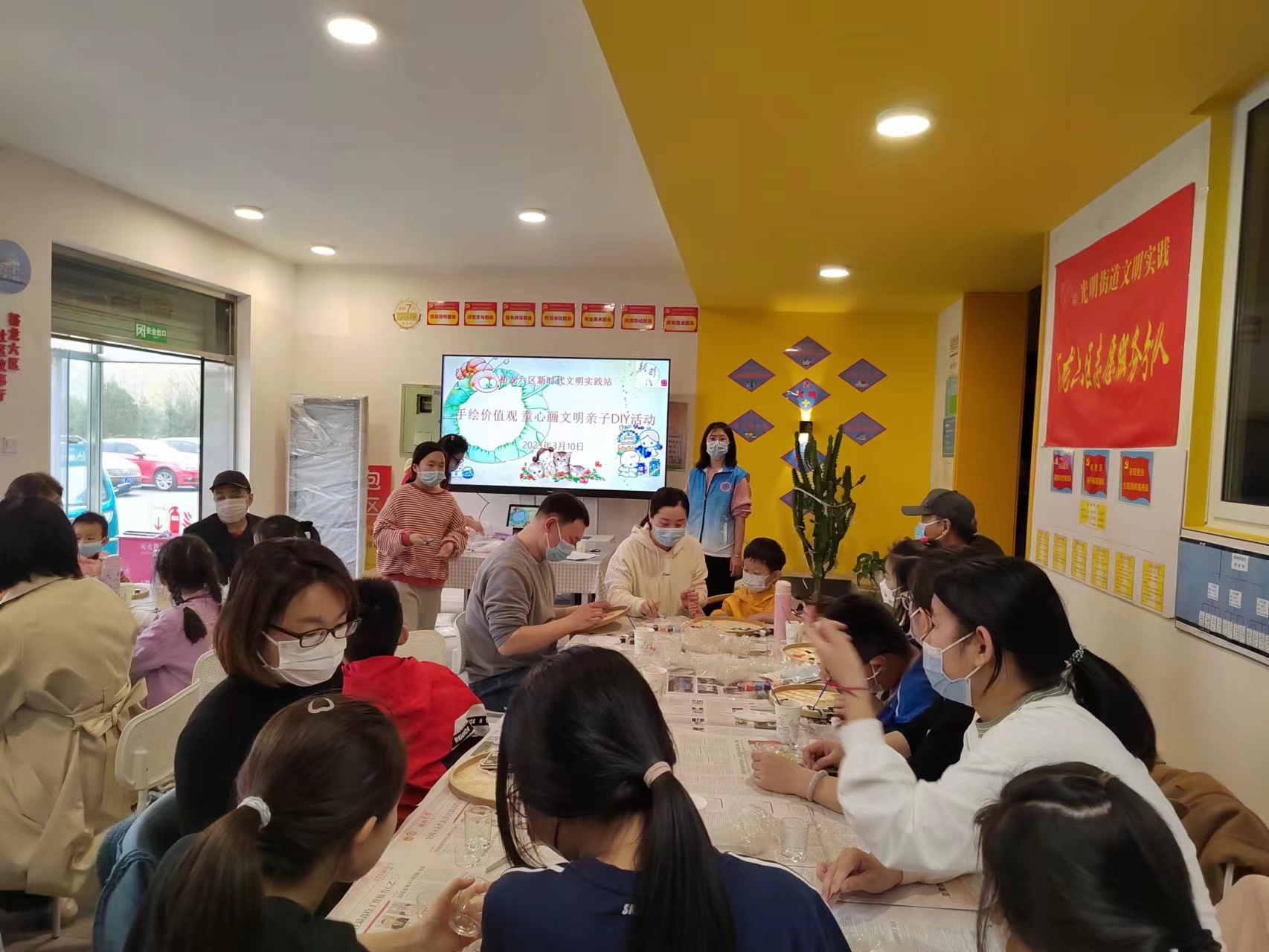 光明街道裕龙六区新时代文明实践站开展“手绘价值观 童心画文明”亲子DIY活动