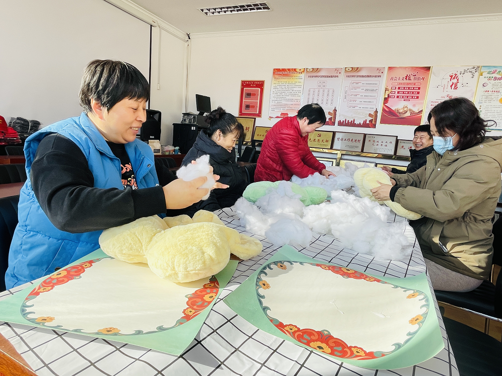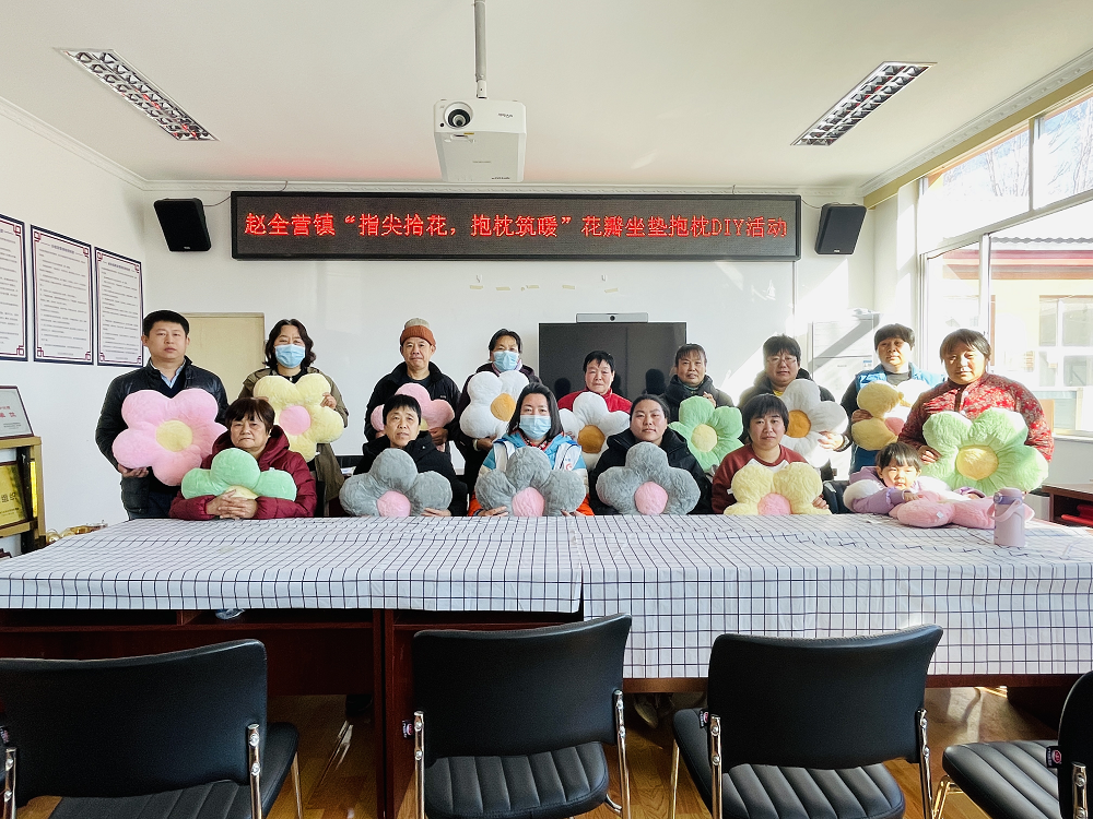 赵全营镇新时代文明实践所开展“指尖拾花 抱枕筑暖”花瓣坐垫抱枕手作活动