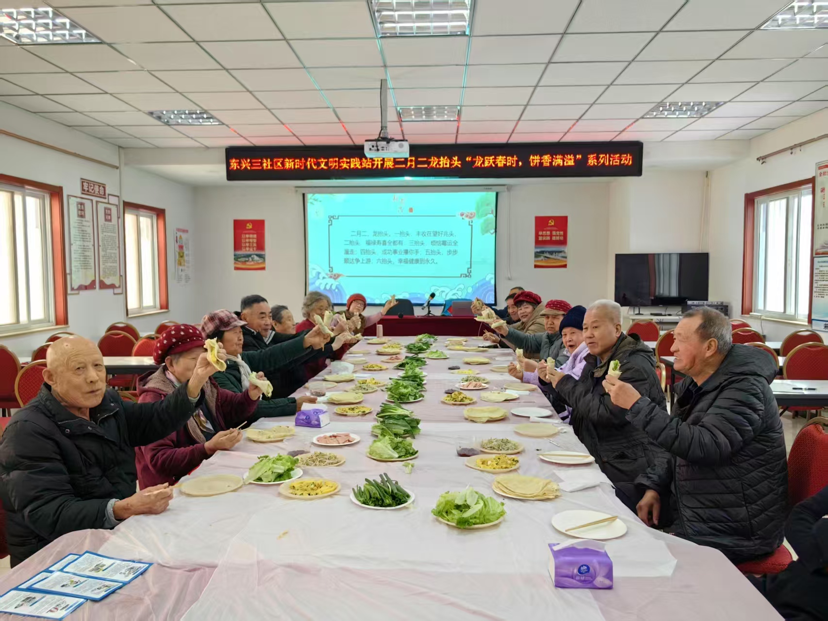 二月二,龙抬头。为了让居民们感受传统节日的文化和氛围,东兴三区新时代文明实践站精心筹备并开展了“龙跃春时 饼香满溢”二月二龙抬头主题活动,让社区空巢、独居老人聚在一起感受节日氛围。