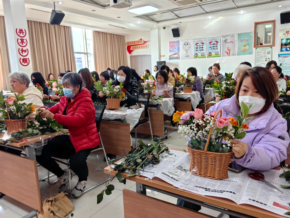 为丰富社区女性的精神文化生活,3月4日,双兴东区新时代文明实践站开展了“花香悦生活 巾帼绽芳华”插花活动,共20余位社区女性同胞参加。