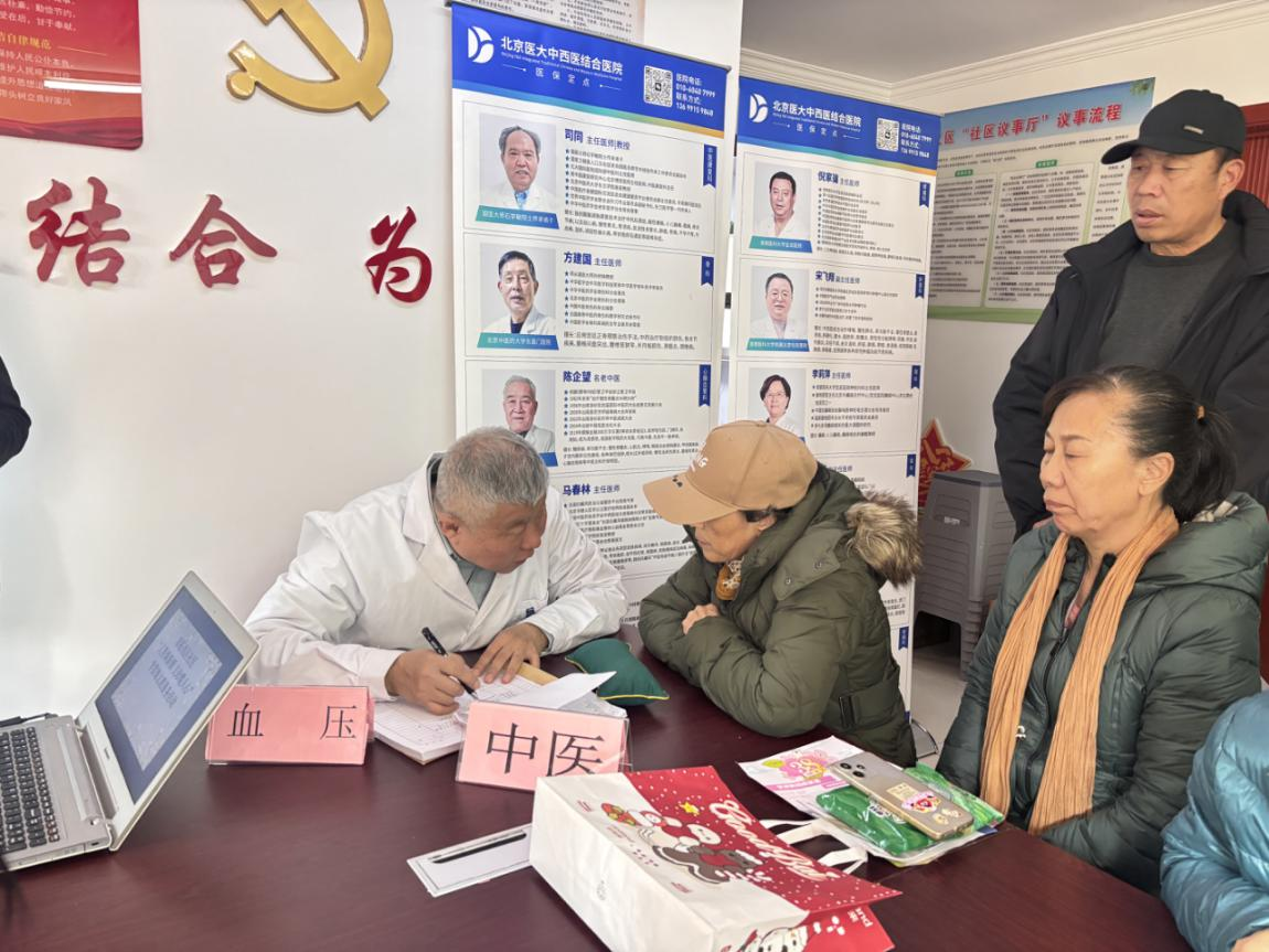 双裕西区社区实践站联合空港医院、北京医大中西医结合医院为社区居民提供义诊服务,针对老年人群体的实际需求开展健康指导等志愿服务。医务人员为居民们测量血压、提供中医诊脉,针对高血压患者,叮嘱其注意日常饮食和作息习惯,提高居民的健康保健意识。