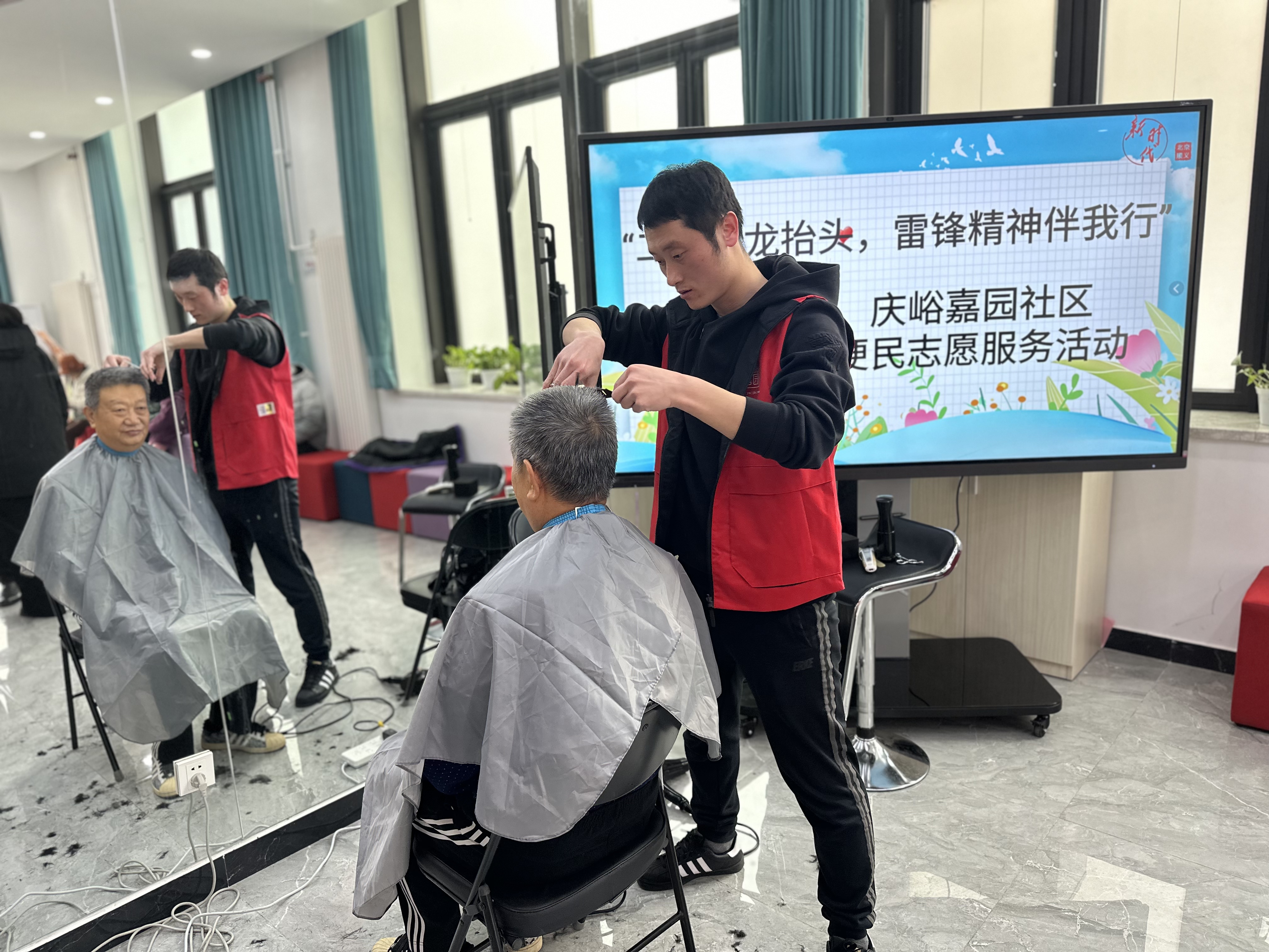 庆峪家园社区实践站设置了免费理发区域,居民们有序排队,满怀期待。志愿者们早早地准备好了理发工具,以饱满的热情迎接每一位前来的老人。志愿者们耐心地与老人沟通,根据老人的需求和喜好精心设计发型,手法娴熟地修剪着每一缕发丝。剪刀在志愿者手中灵活飞舞,不一会儿,原本有些凌乱的头发就变得整齐利落,老人们精神面貌焕然一新,脸上洋溢着满意的笑容。