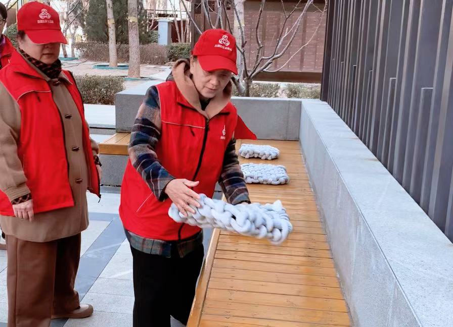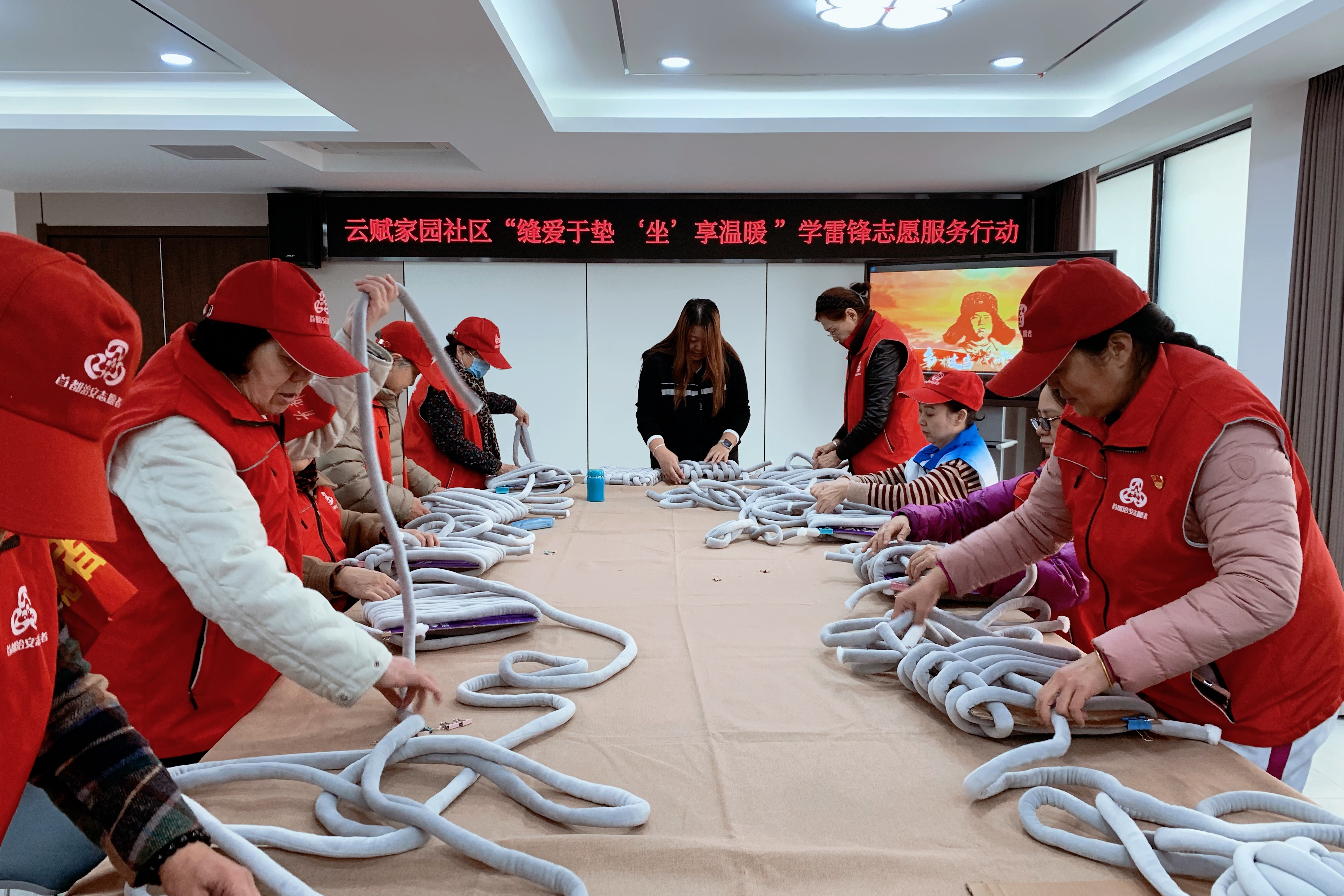 云赋家园社区实践站发起“缝爱于垫‘坐’享温暖”公益行动。活动开始,志愿者选用优质冰岛毛线,经过几个小时的精心制作,编织出一个个柔软厚实的坐垫,制作完成后,志愿者们将坐垫铺设于社区的露天长椅,并附上“雷锋事迹”靠枕,为社区凉亭、休憩椅公共区域打造“温暖驿站”,真正的从点点滴滴弘扬宣传雷锋精神。