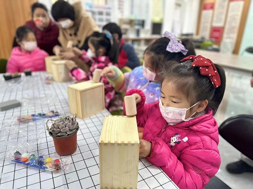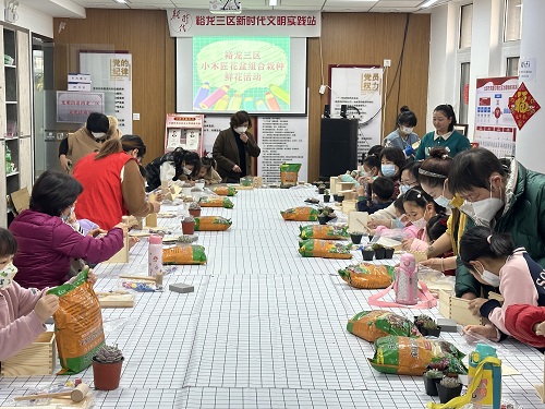 光明街道裕龙三区新时代文明实践站开展小木匠花盆组合栽种鲜花活动