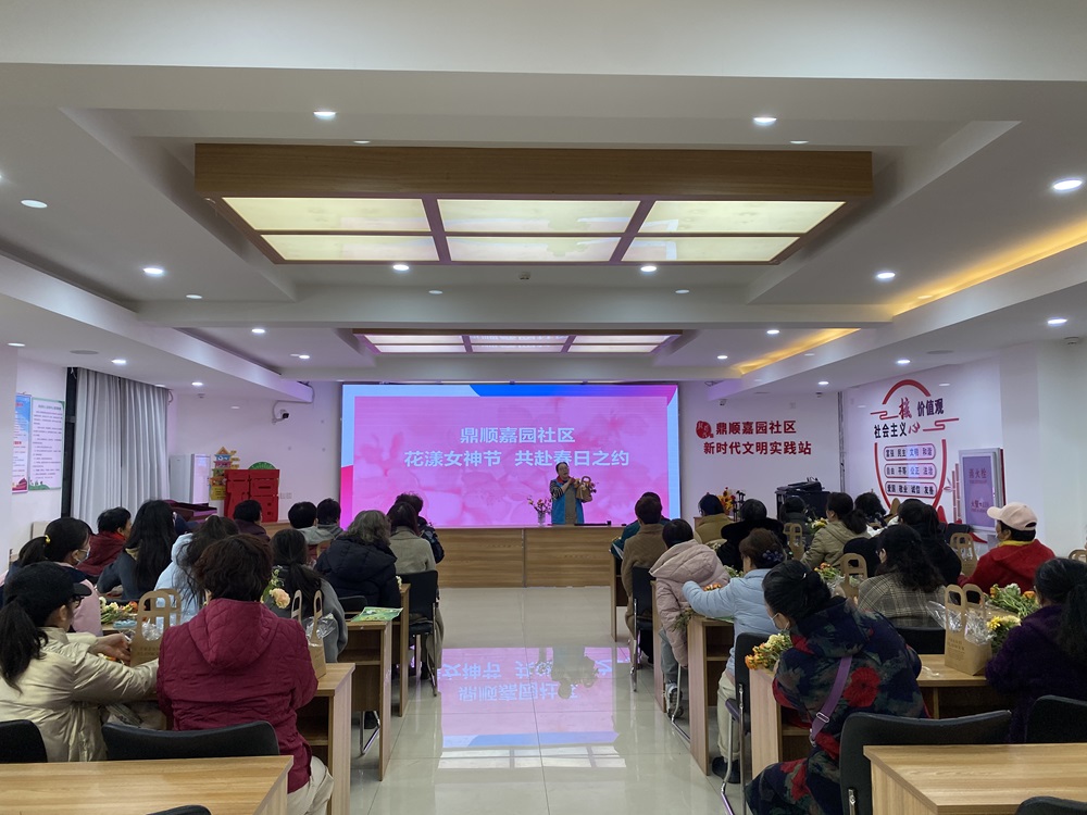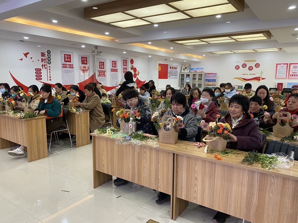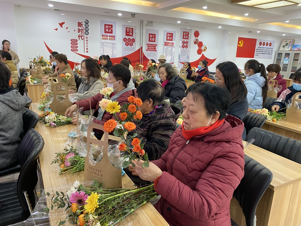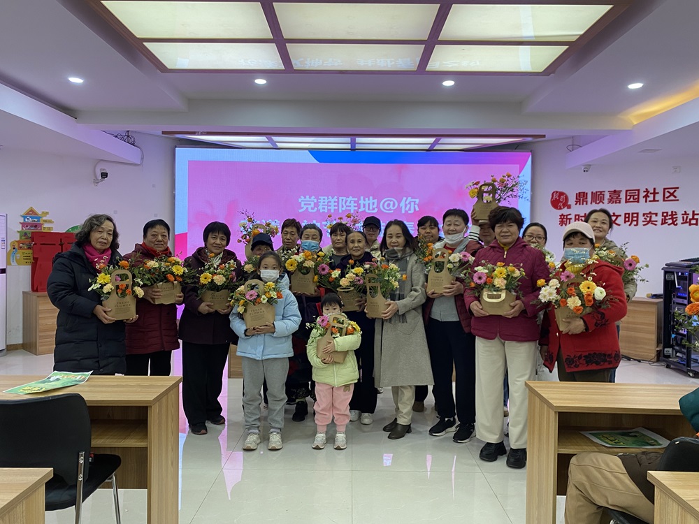 仁和镇鼎顺嘉园社区新时代文明实践站开展“花漾女神节 共赴春日之约”插花活动