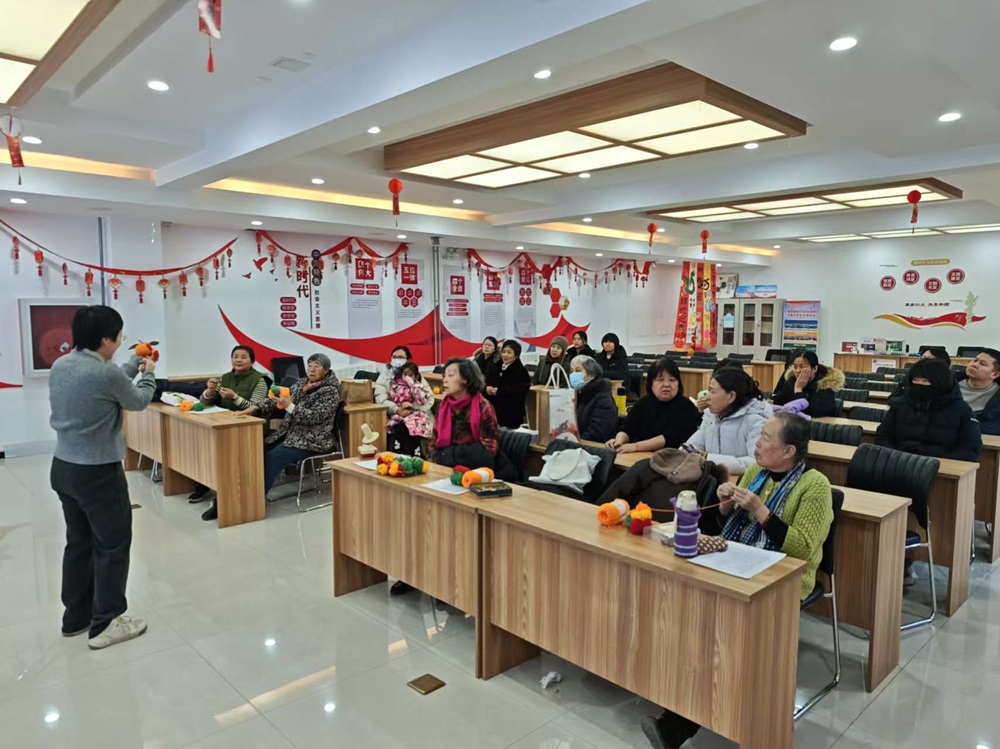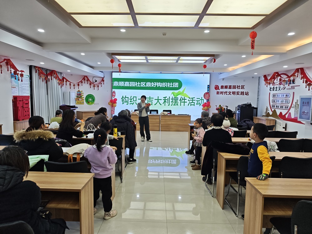 仁和镇鼎顺嘉园社区新时代文明实践站开展“大吉大利”摆件钩织活动