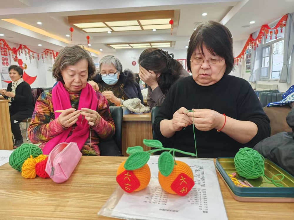 活动中,专业手工老师为居民们讲解用钩针编织摆件“小橘子”的技巧,从最基础的起针方法,到复杂的绕线手法,再到塑造“小橘子”圆润饱满的形状,居民们全神贯注,紧跟着老师的每一个示范,手中的钩针和毛线也逐渐生成了“小橘子”的模样,让人心生欢喜。
