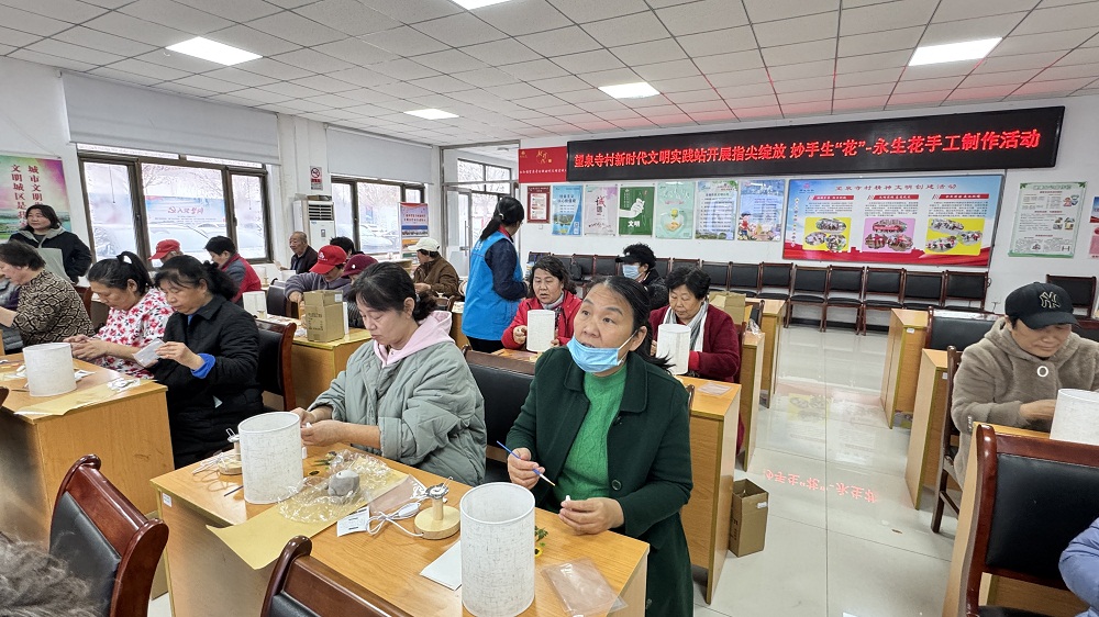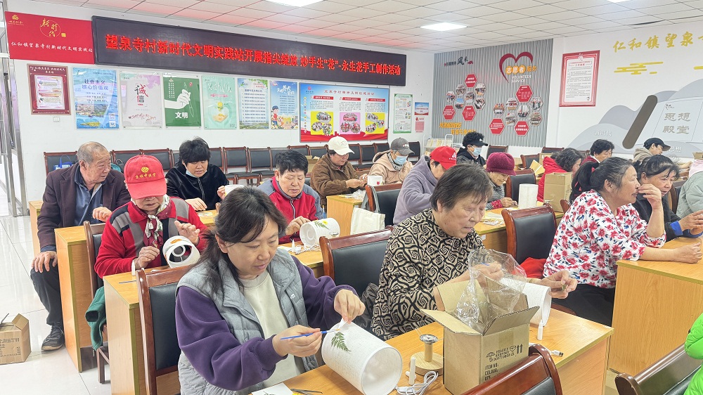 仁和镇望泉寺村新时代文明实践站开展“指尖绽放 妙手生‘花’”压花台灯制作活动