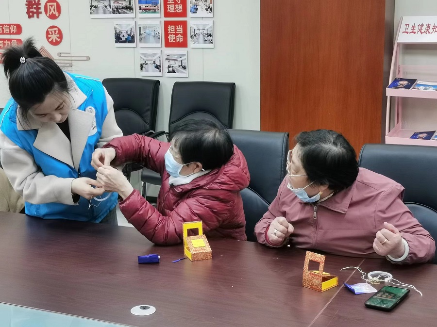 旺泉街道望泉西里南三社区新时代文明实践站开展“灵活手脑,快乐编织”DIY活动