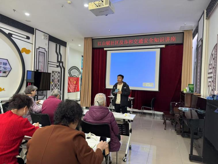 云赋家园社区、江山赋社区、香花畦社区等实践站携手共进,共同开展“文明交通宣传会”活动,在真实事故案例讲解中让居民们意识到交通违法行为的风险及严重后果,增强大家的交通安全意识,做到文明安全出行。