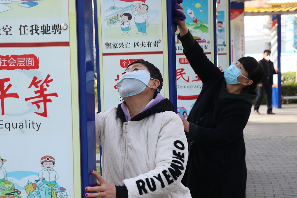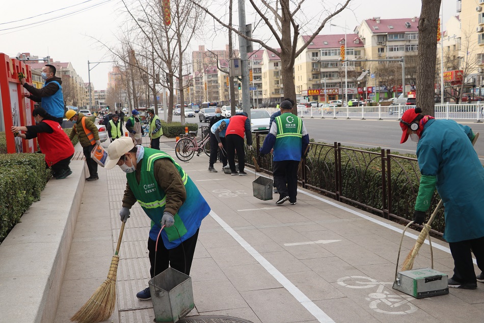 大家拿着夹子、抹布、扫帚等工具积极投身扫除活动,对绿化带内垃圾、杂物进行清理,擦拭周边宣传栏、垃圾桶,贡献着自己的一份力量,共同维护干净整洁的良好环境。