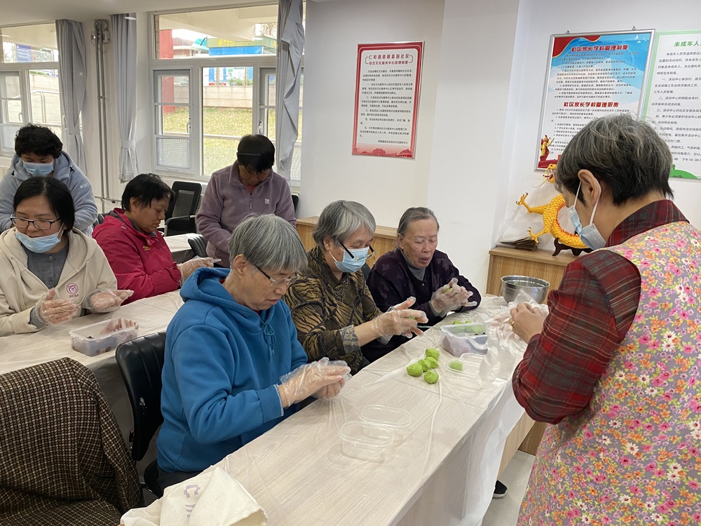仁和镇鼎顺嘉园社区新时代文明实践站开展“探索清明风俗 感受文化传承”青团手工制作活动