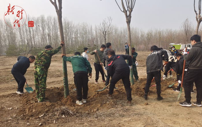 在植树现场,志愿者、群众们拿起铁锹,分工协作、有序配合,挖坑、扶苗、填土、踩实,每个环节都衔接有序、配合默契,种下了一株株错落有致、生机盎然的苗木。新栽下的树木迎风挺立,萌发着无限生机和希望,为如画南法信再添新绿。