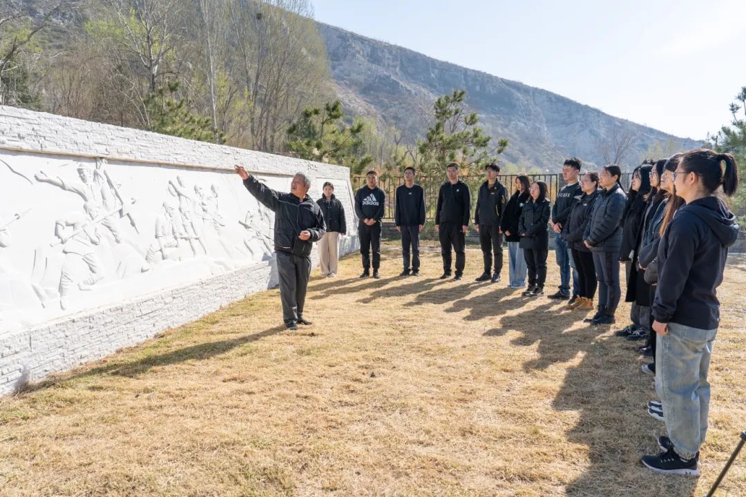 活动中,青年干部们认真聆听赵家峪村村民李九海讲述革命先烈的英勇事迹。随后,大家瞻仰烈士纪念碑,缓缓走上前,献上手中鲜花,向为国捐躯的革命先烈致以崇高敬意。