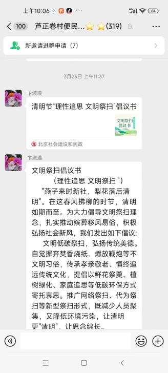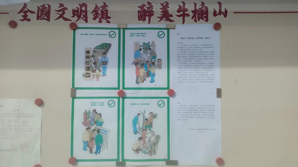 为弘扬中华民族优秀传统美德,近期,牛栏山镇新时代文明实践所(站)紧扣“倡导移风易俗 弘扬文明新风”主题,统筹推进祭扫服务保障、文明祭扫宣传、移风易俗引导和人居环境整治四项重点工作,着力培育文明乡风、良好家风、淳朴民风,构建文明、绿色、安全的清明祭扫新格局。