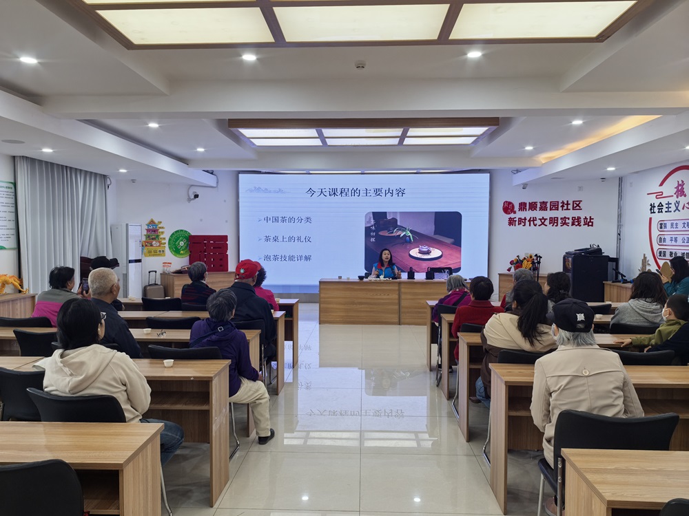仁和镇鼎顺嘉园社区新时代文明实践站开展“以茶相聚 共品香茗”茶文化主题讲座活动