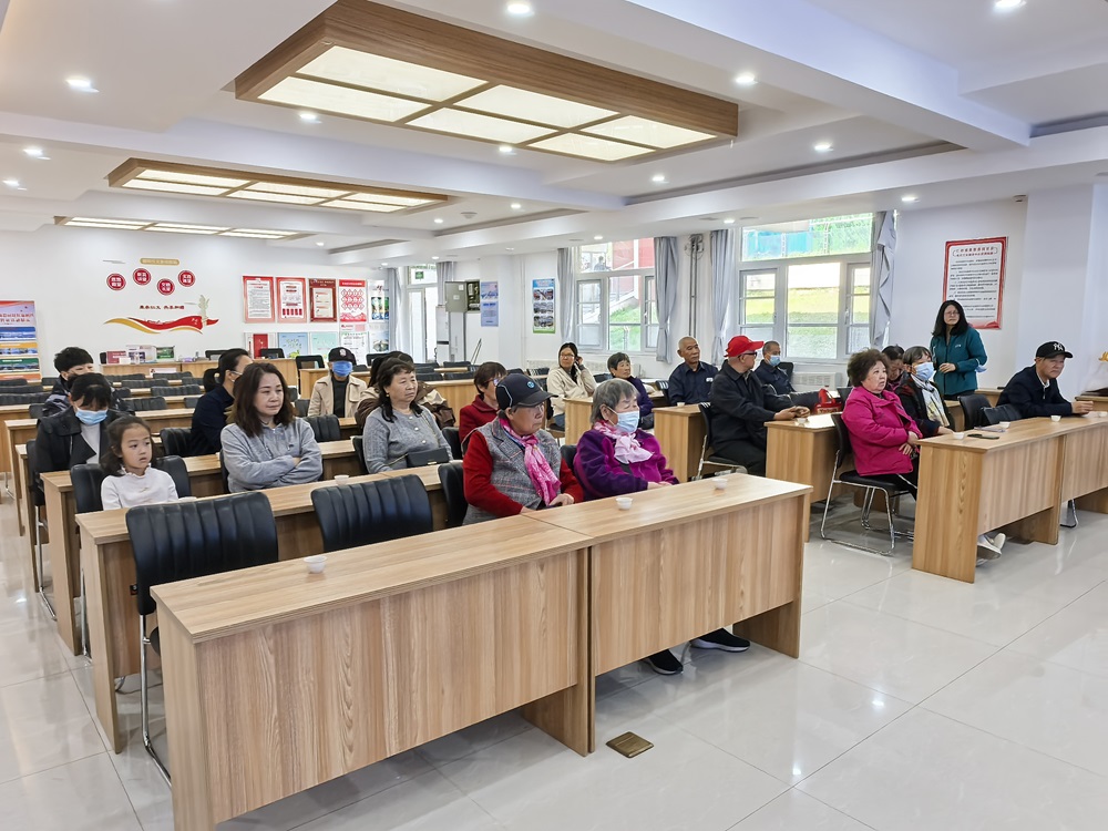 讲座中,茶艺师为居民们展示各类茶叶样本,介绍不同茶的特色、产地与制作工艺。随后,老师带大家一起学习茶桌礼仪,从茶具摆放、端茶姿势,到敬茶、回礼细节,居民们在礼仪练习中认真体会茶文化的独特韵味。接着,在老师的示范下,居民们兴致勃勃地尝试泡茶,温杯、投茶、注水、出汤,大家虽手法生疏,但热情高涨。最后,居民们互相分享自己泡的茶,一起品味茶香富有层次的口感。
