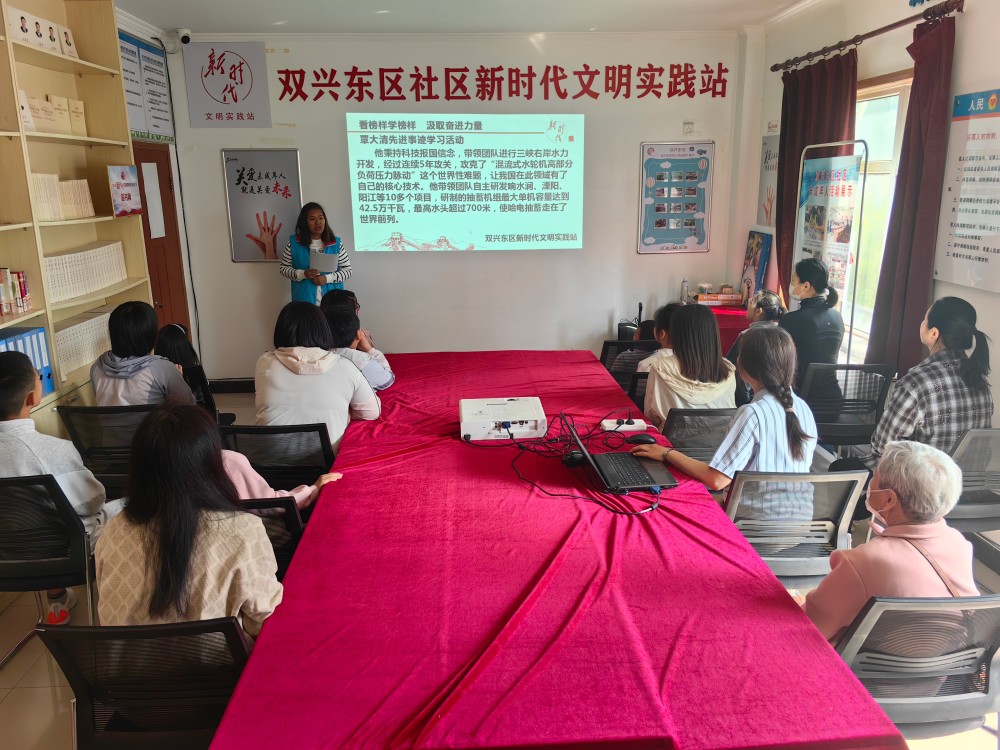 活动中,志愿者向居民们讲述覃大清先进事迹。覃大清面对国家重大水电工程的诸多难题,坚持带领团队攻坚克难,以坚定的信念和卓越的智慧,推动中国水电技术走向世界前列。覃大清勇于挑战极限、追求卓越的工作精神让居民们深受触动。