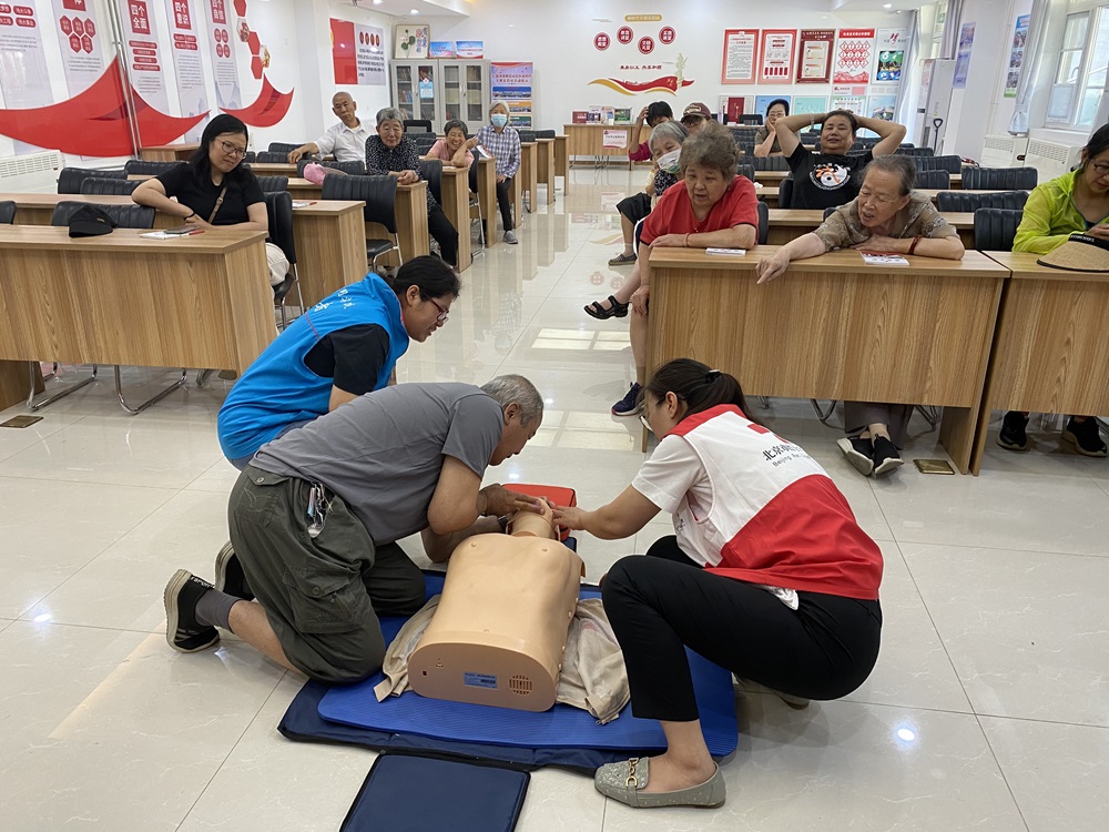 活动中,老师通过理论讲解与实操演示相结合的方式,向居民们详细讲解心肺复苏、海姆立克急救法、创伤包扎等急救知识,并借助模拟人教具指导大家进行实操练习。老师还结合日常生活中的常见意外事故案例,让居民们意识到急救“黄金时间”的重要性,帮助大家掌握正确的应急处置方法。