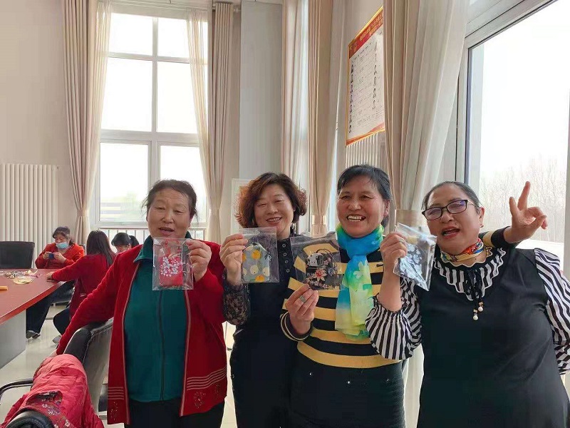 北石槽镇下西市村新时代文明实践站开展手工制作绢花活动