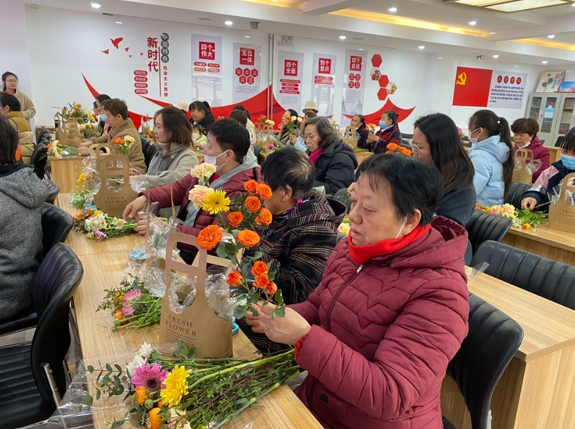 仁和镇鼎顺嘉园社区新时代文明实践站开展“花漾女神节 共赴春日之约”插花活动