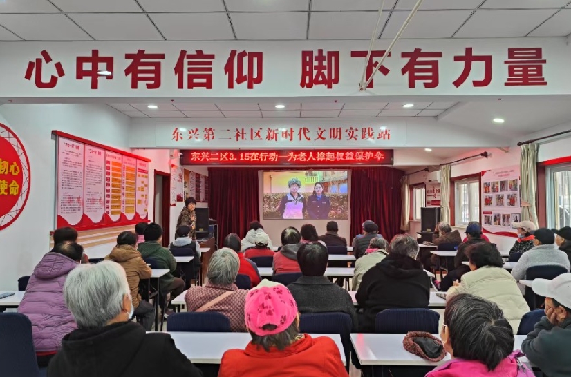 光明街道东兴二区新时代文明实践站开展“3·15在行动——为老年人撑起权益保护伞”宣讲活动