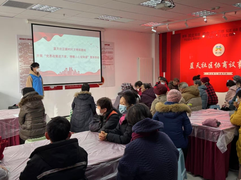 蓝天社区新时代文明实践站开展“党恩政策进万家 情暖人心促和谐”宣讲活动
