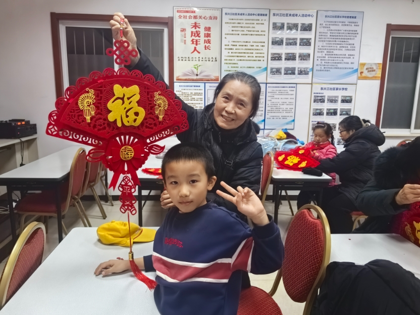 东兴三区新时代文明实践站开展“萌娃拼‘福’字 喜庆过元旦”亲子活动