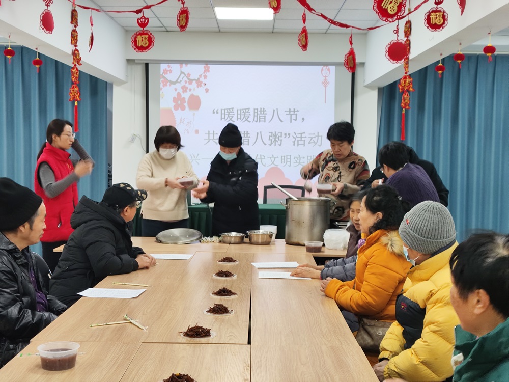 光明街道东兴一区新时代文明实践站开展“暖暖腊八节 共享腊八粥”活动