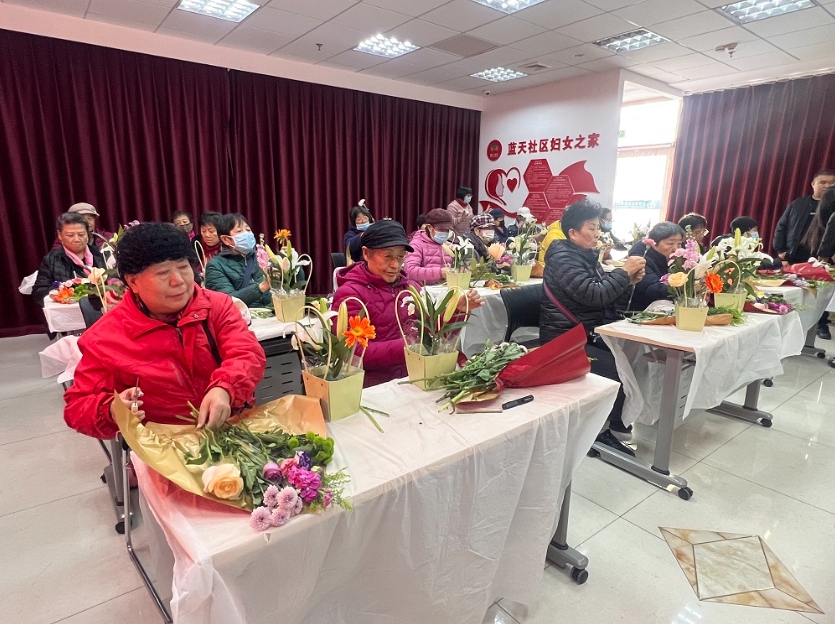 蓝天社区新时代文明实践站开展“心生美好 如花绽放”插花活动