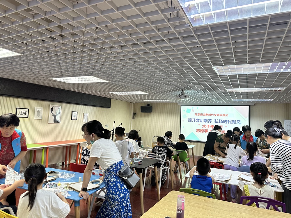 旺泉街道新时代文明实践所开展“提升文明素养 弘扬时代新风”蝶古巴特包手工制作活动