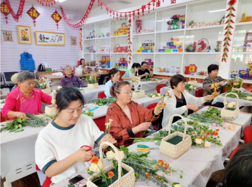 胜利街道新时代文明实践所开展 “花团锦簇迎国庆”插花活动