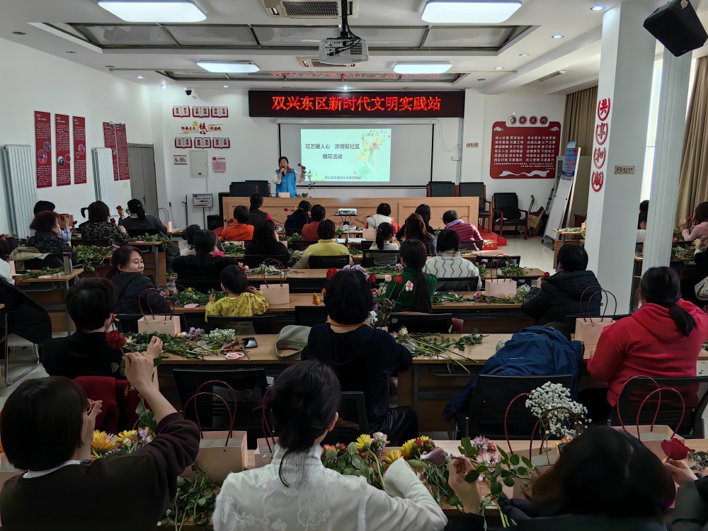 为庆祝“三八”国际妇女节的到来,丰富居民文化生活,2024年3月6日,双兴东区新时代文明实践站开展“花艺暖人心,浓情聚社区 ”三八妇女节插花活动。 [查看详情]