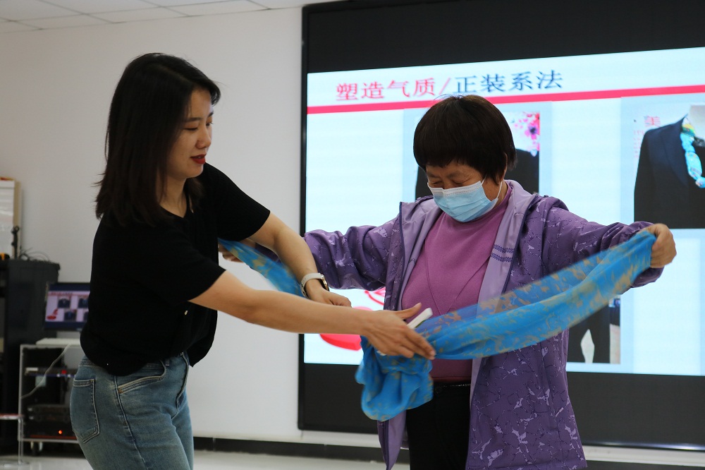 仁和镇望泉寺村新时代文明实践站开展“丰富文化生活 共创幸福社区”丝巾搭配活动